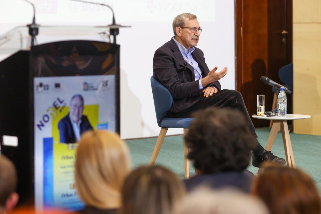 “Cea mai mare bucurie a vieții mele este să scriu ficțiune”, spune cu zâmbetul pe buze Orhan Pamuk în fața audienței strânse în Aula Universității de Vest din Timișoara.