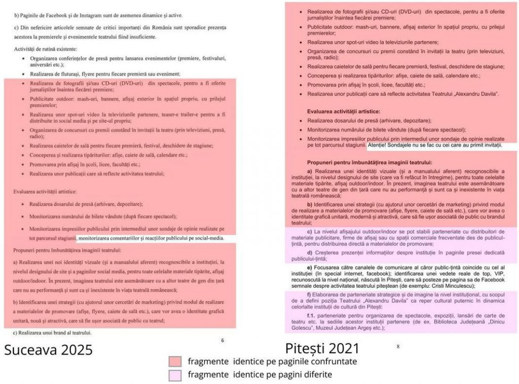 Doar că publicațiile locale Cortina și Crai Nou au dezvăluit că acesta a copiat fragmente întregi dintr-un alt proiect de management, depus la Pitești în 2021. Jurnalista Luana Popa de la Crai Nou demonstrează cu documente furtul intelectual.
